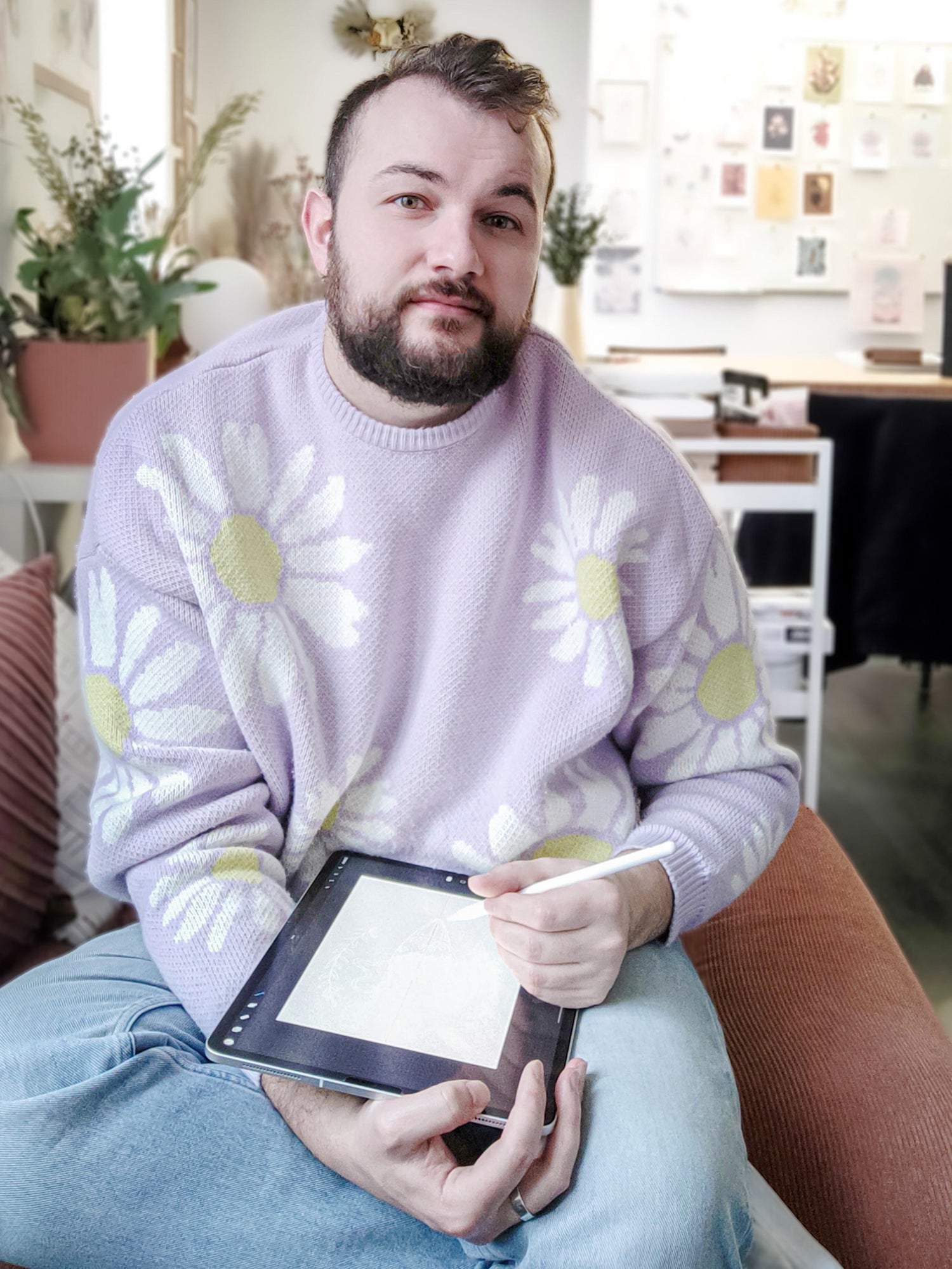 Edouard est un artiste illustrateur autodidacte. Après un parcours professionnel chaotique, il trouve enfin sa vocation pendant le confinement : avec le temps qui lui était offert, il s’est remis à dessiner tous les jours.
