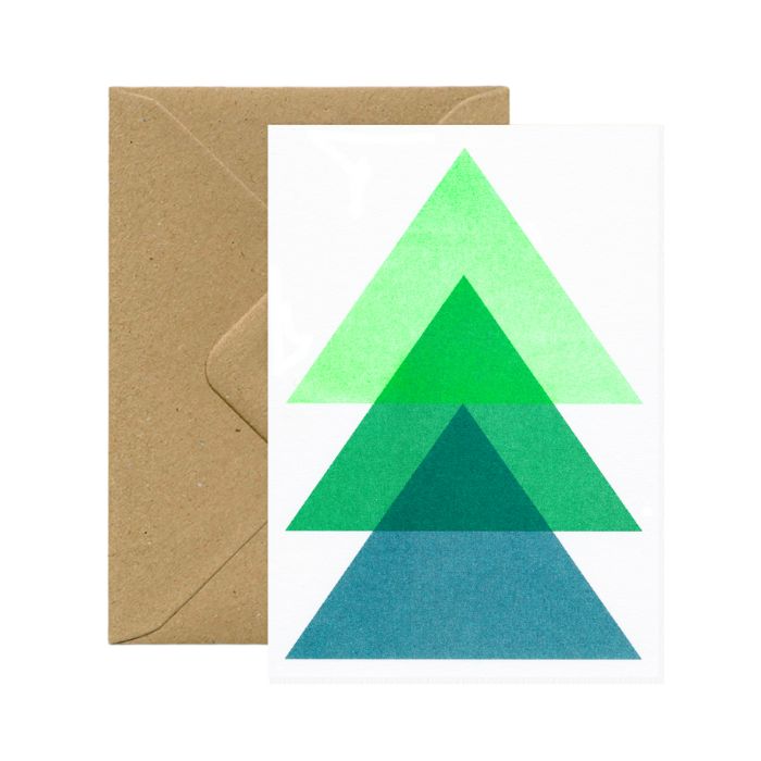 Carte de Noël sapin imprimée en Riso.